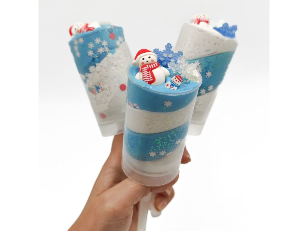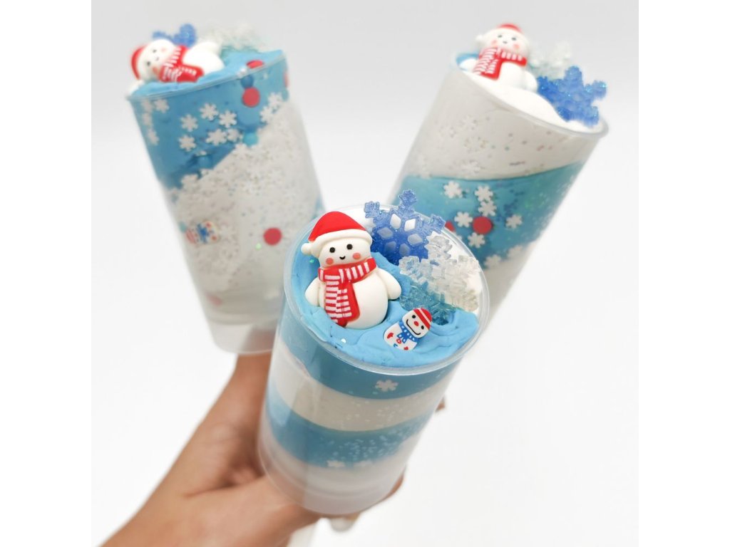 120g měkkoučké dvoubarevné domácí modelíny, třpytky, konfety, 3ks dekorace - sněhulák, 2ks vloček.