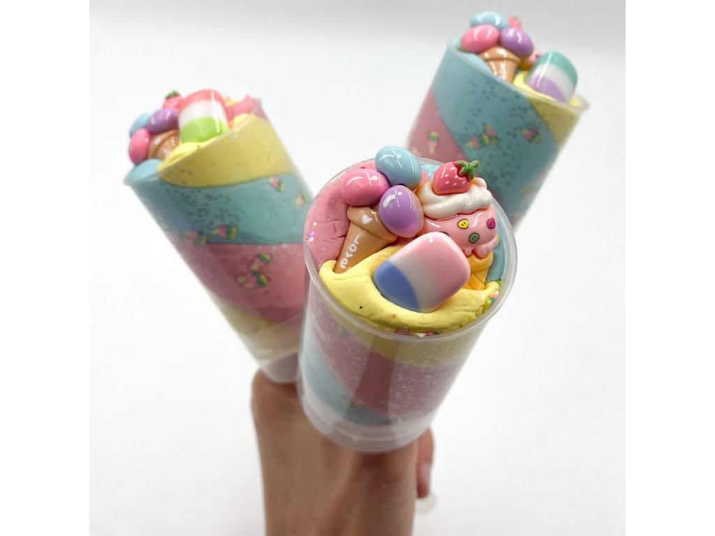 Modelína skrytá ve vysunovací nádobce. Stačí vystrčit a jde se na hru. Tato přináší krásné pastelové barvy a zmrzlinky.