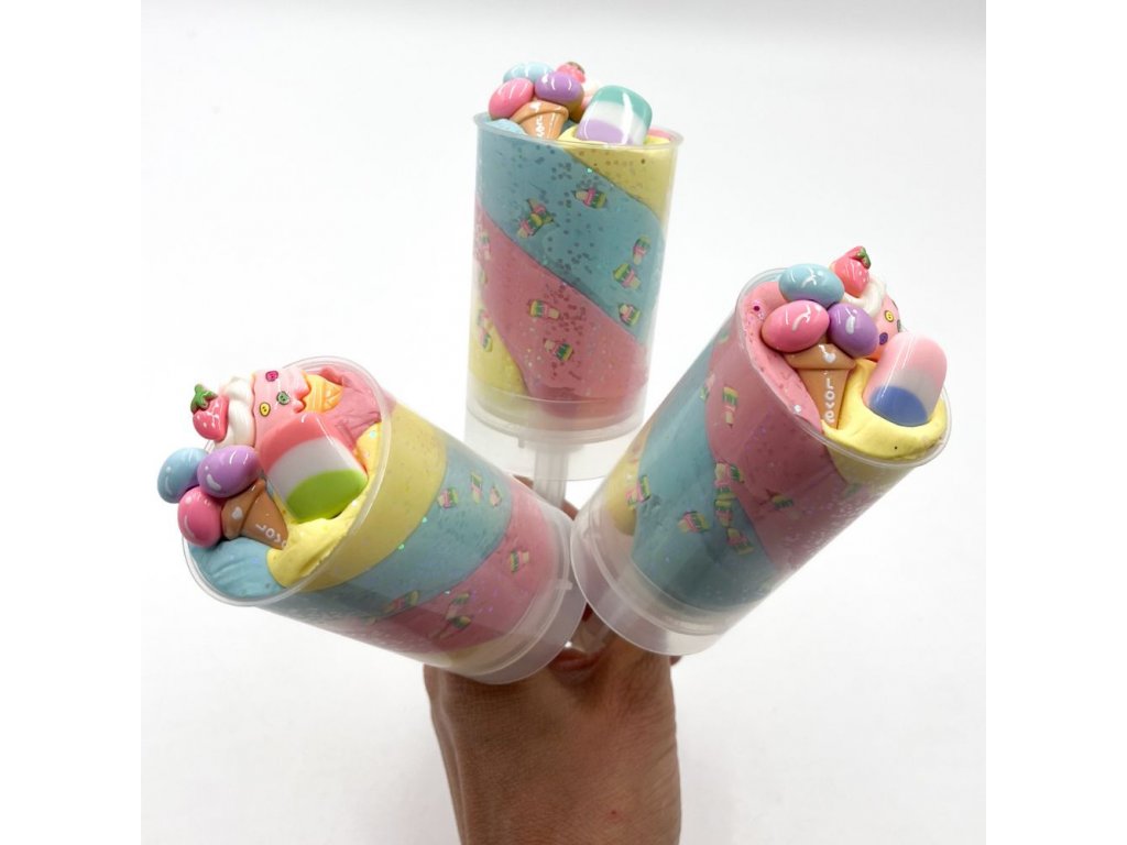 Modelína skrytá ve vysunovací nádobce. Stačí vystrčit a jde se na hru. Tato přináší krásné pastelové barvy a zmrzlinky.