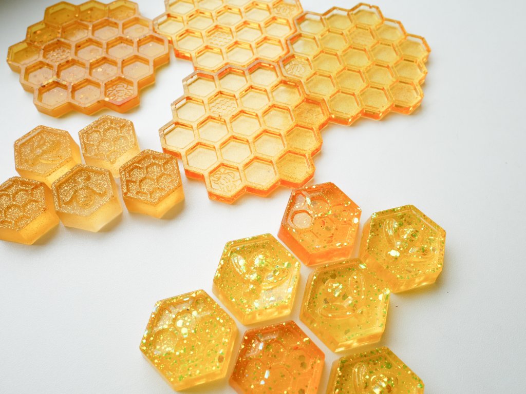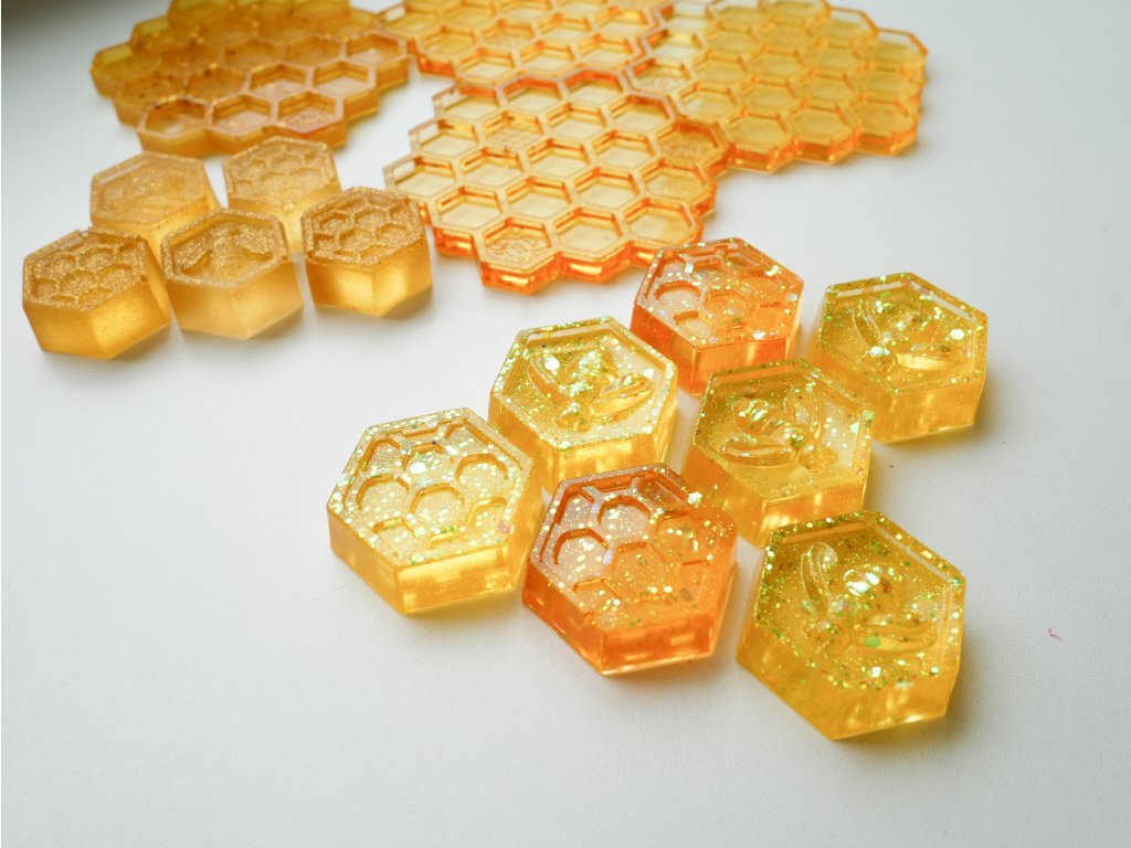 Včelí úlíky krásně doplní vaše včelí smyslohraní! Obtiskávejte je do mamolíny, či kineťáku, hledejte v sypkém materiálu a lovte v perlách.