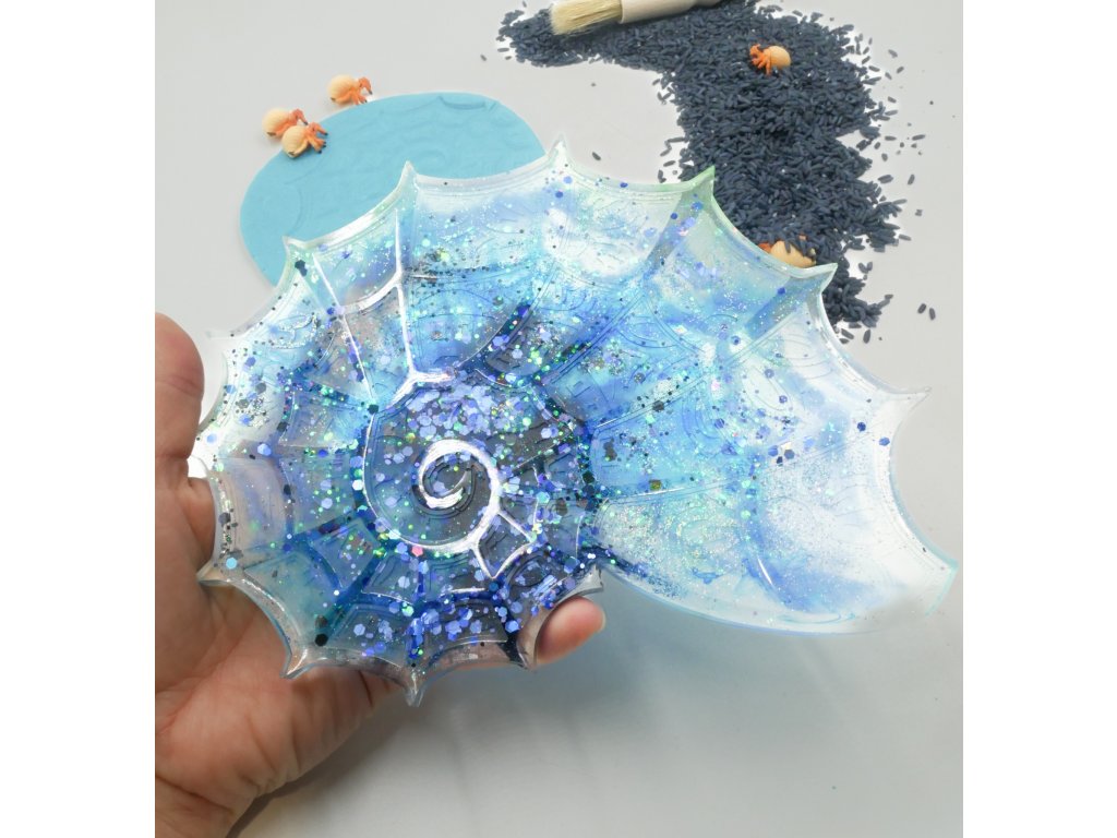 Úchvatná mušle ve tvaru ulity z pryskyřice pomůže rozehrát mořské smyslohraní. Můžete ji obtisknout do modelíny, či kinetického písku. Vysypávat sypkým materiálem, využít jako tácek k vodním perlám, či jiným mokrým hrátkám.