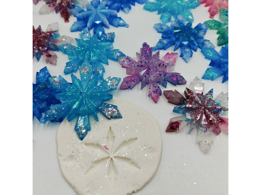 Pryskyřicové sněhové vločky krásně dozdobí vaše hraní a navodí zimní atmosféru. Děti je mohou hledat v nachystaném smyslovém materiálu, či obtiskávat do modelíny. Využijete je také do adventního kalendáře.