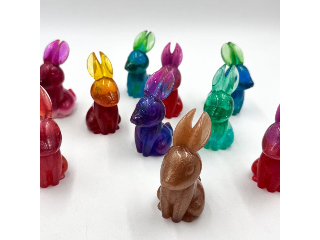 Krásný velký zajíc z pryskyřice. Děláme je v různých barvách a s různými třpytkami. Pokud máte barevné přání, napište do poznámky. Pokud zrovna nebude skladem, počítejte s delším dodáním. Jinak volíme dle skladových zásob.