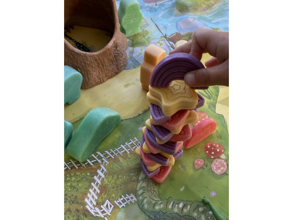 Hrací kameny od značky Yellow Door mohou děti použít při vymýšlení příběhů plných kouzelných mochomůrek, klenoucích se duh a lesknoucích se hvězd.