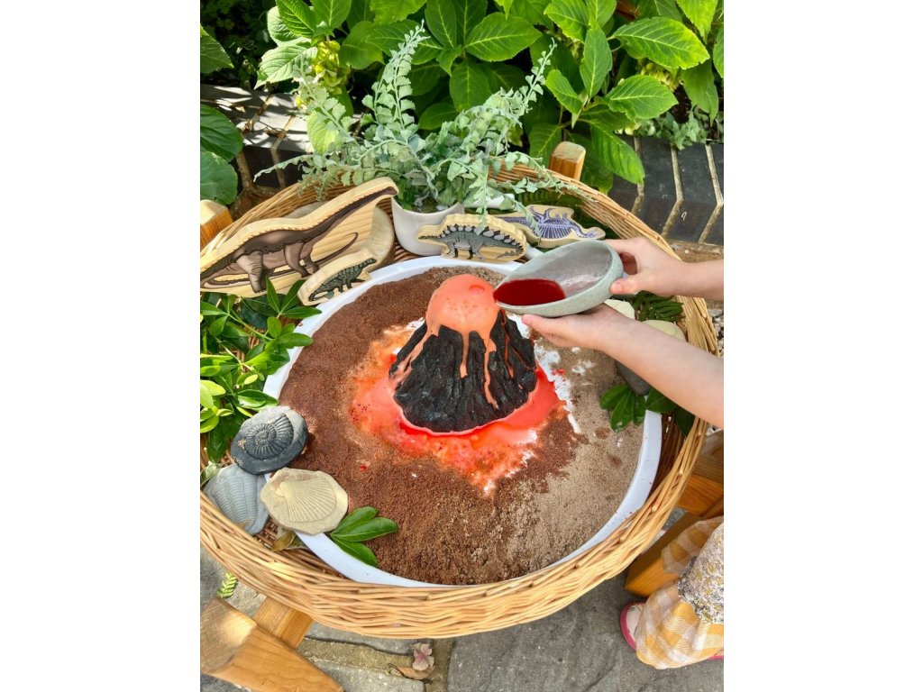 Děti budou rády prozkoumávat tuto sopku od Yellow Door a vymýšlet příběhy o tom, co se kolem ni děje. Můžete ji také použit na bublavé pokusy s jedlou sodou a octem a napodobit tak opravdový výbuch sopky. Můžete také dotvořit lávu naší mamolínou nebo slizem.
