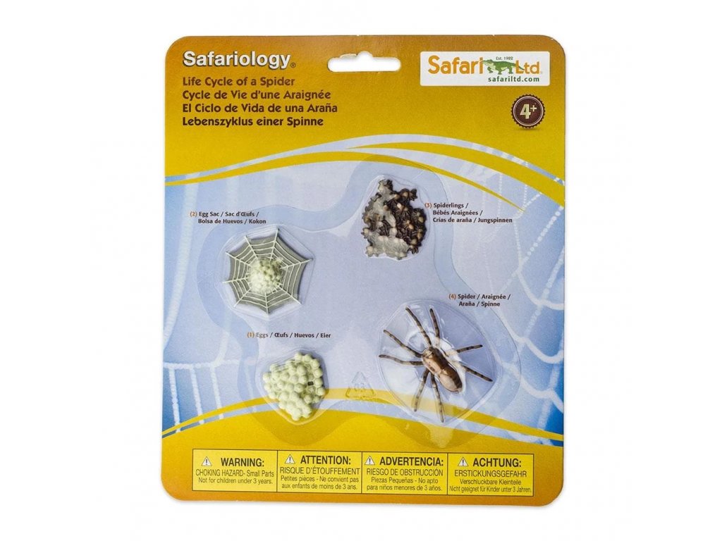 Charakteristika: Tato edukační sada figurek pomáhá dětem dozvědět se o vývojových stádiích pavouka, od vajíčka přes vaječný váček přes pavoučky až po dospělého pavouka. Tato vysoce detailní a vědecky přesná sada je skvělým učebním nástrojem pro poznávání pavoukovců.