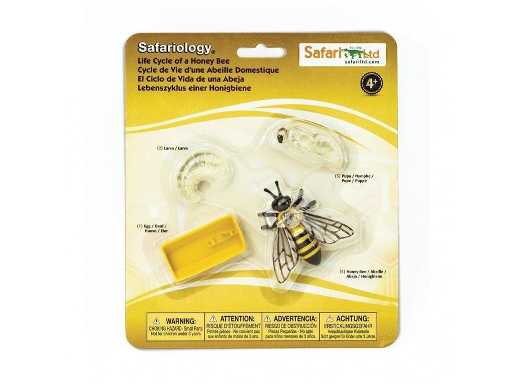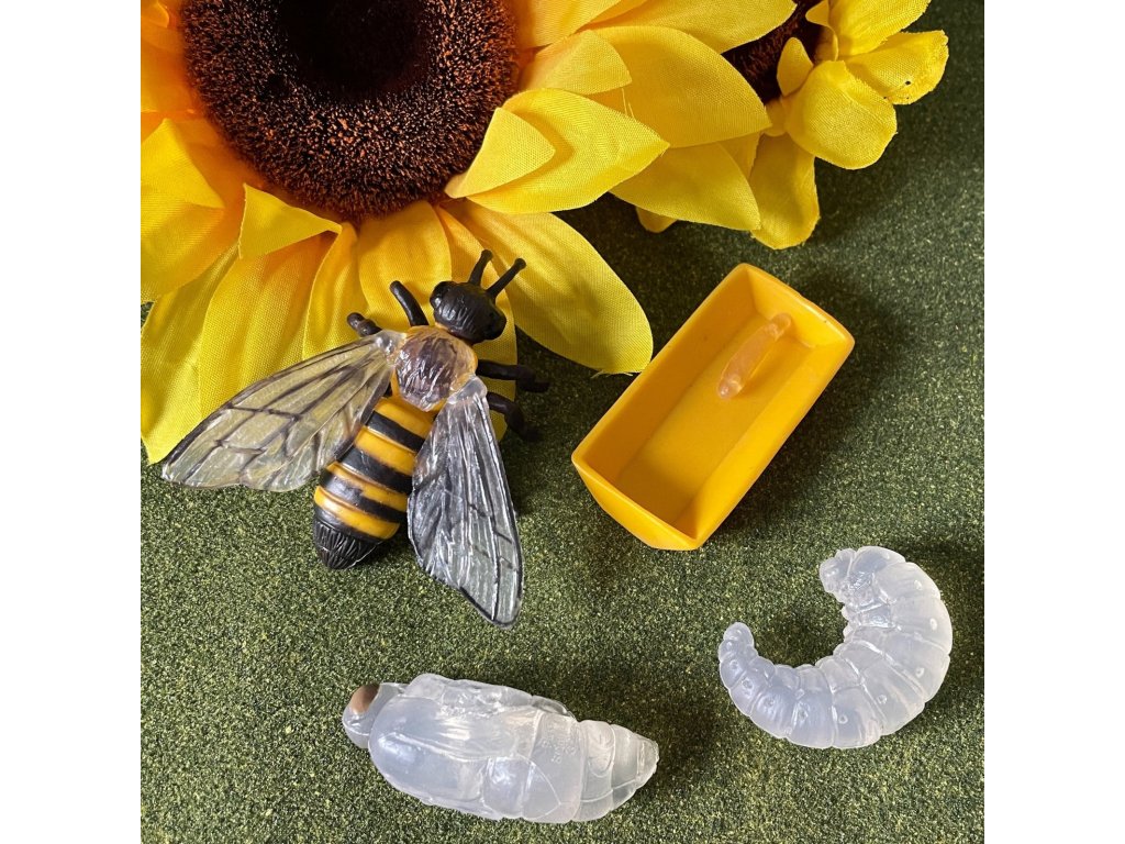 Safari Ltd - Životní cyklus - Včela Tvrdě pracující včely rychle procházejí svým životním cyklem, od vajíčka do dospělosti trvá pouhých 21 dní. Včely v larválním stádiu jsou krmeny dělnicemi, a jakmile projdou metamorfózou a stanou se dospělými, zapojí se do hledání nektaru a pylu.